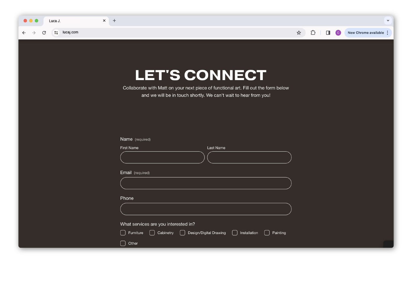 Luca J offers hand-crafted, custom made furniture, cabinetry, carpentry, and more. Your home deserves unique creations that enhance their intended space.